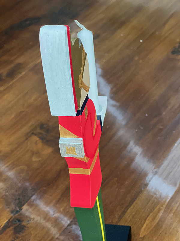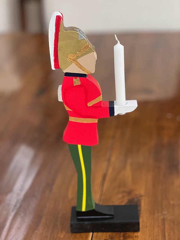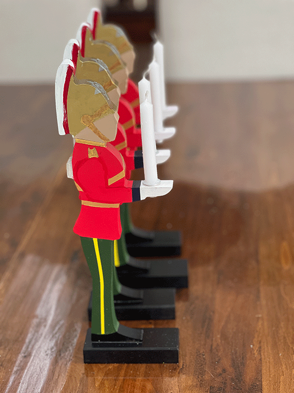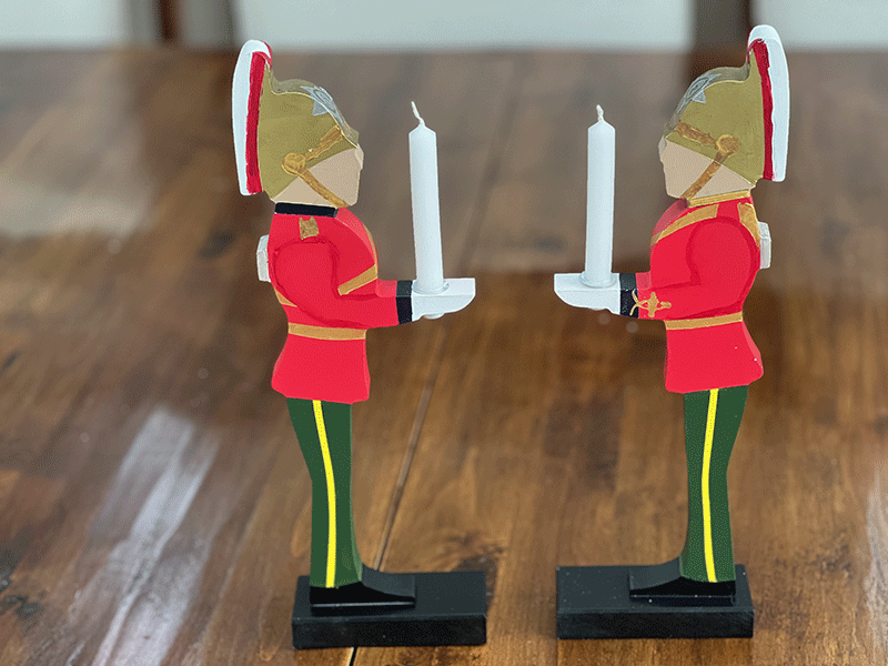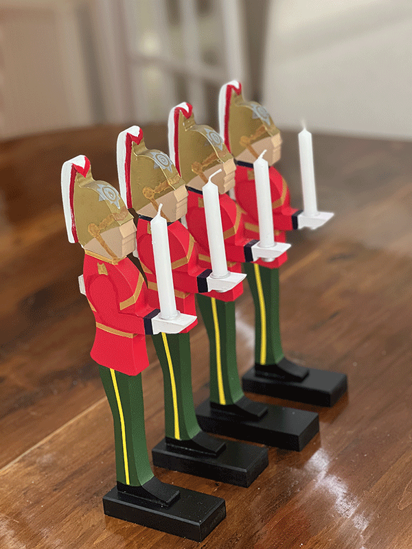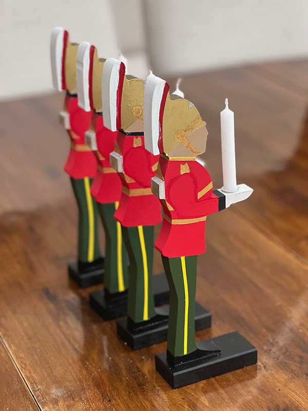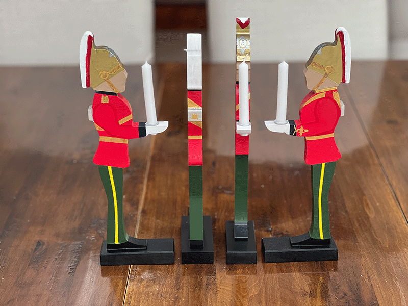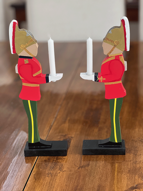 Pair of Miniature Candlesticks: Officer 5th Royal Inniskilling Dragoon Guards - 300mm high